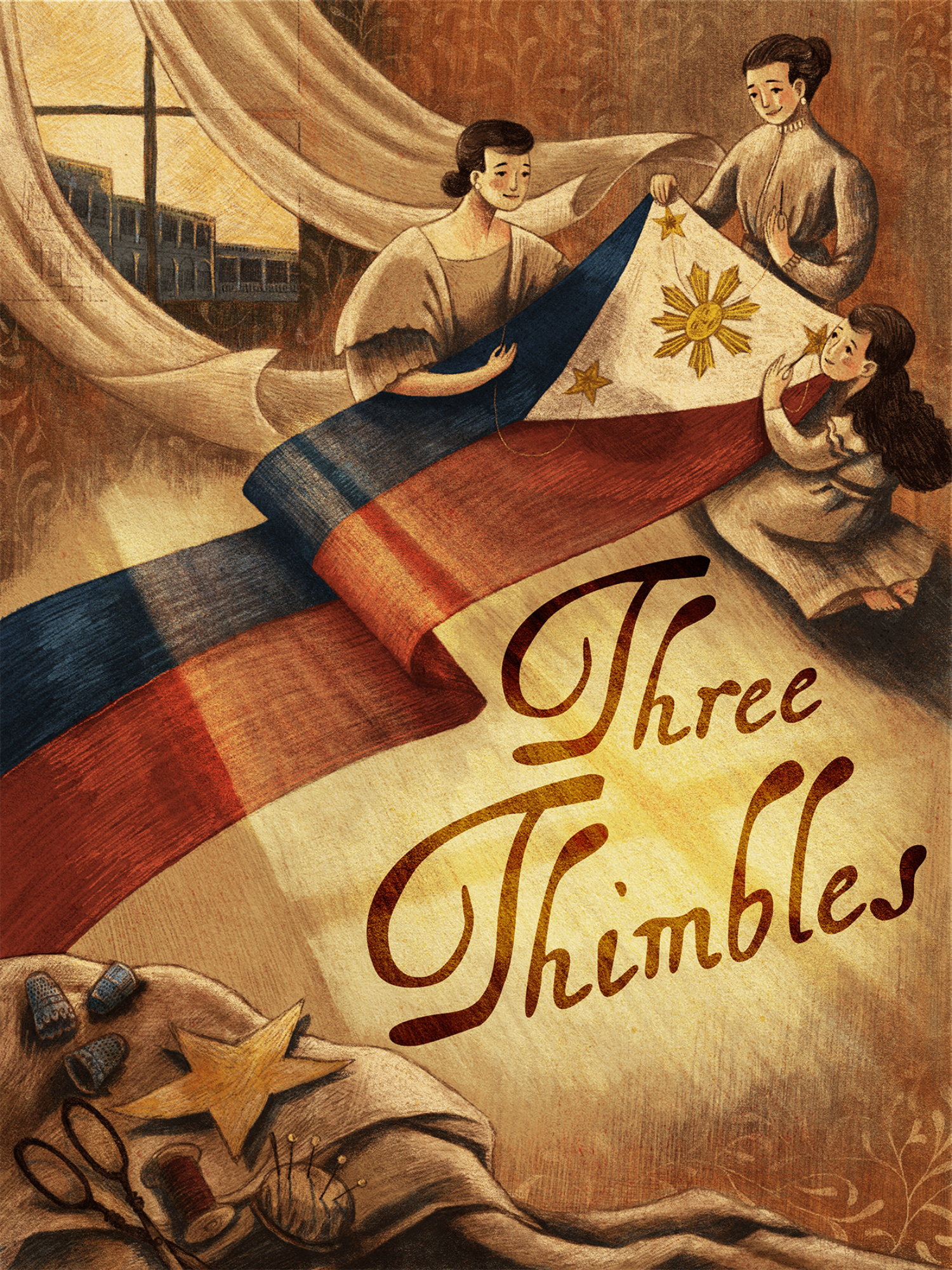 The PBBY awards this year’s PBBY-Alcala Grand Prize to Christina “Tin” Javier, a paper collage and digital artist from Cavite. Javier’s illustrations are based on this year’s PBBY-Salanga Grand Prize winner, Three Thimbles by Patricia Marie Grace S. Gomez.