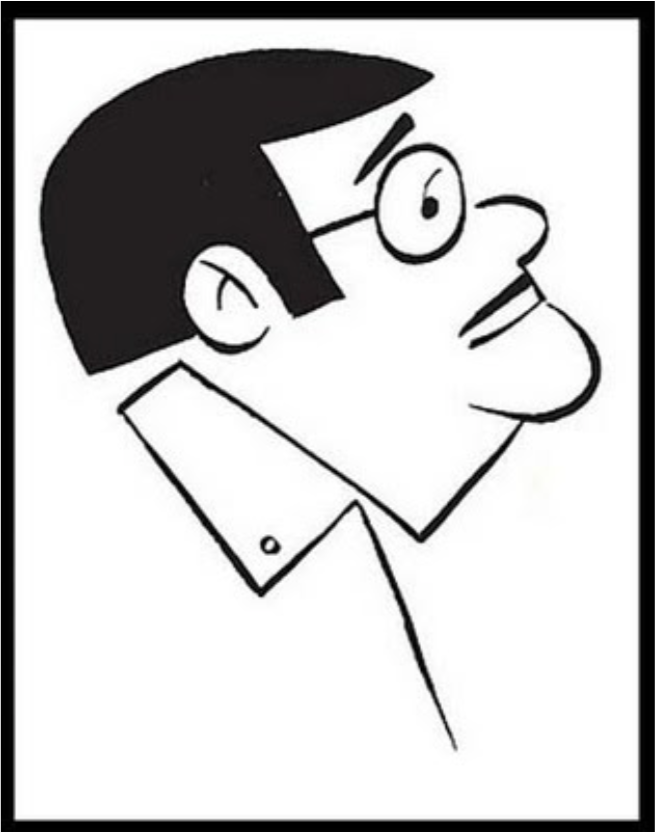 His houses and buildings are rendered in straight and precise pen-and-ink lines, giving a hint of his earlier leanings towards engineering. His people are rendered simply, as somehow dictated by cartoon visual standards, but are variably expressive depending on the situations and events. Creating crowds is a visual skill that, if not masterfully handled, results in clutter and imbalance. Rhythm is the key to his execution, grouping similar elements in horizontal or diagonal succession.