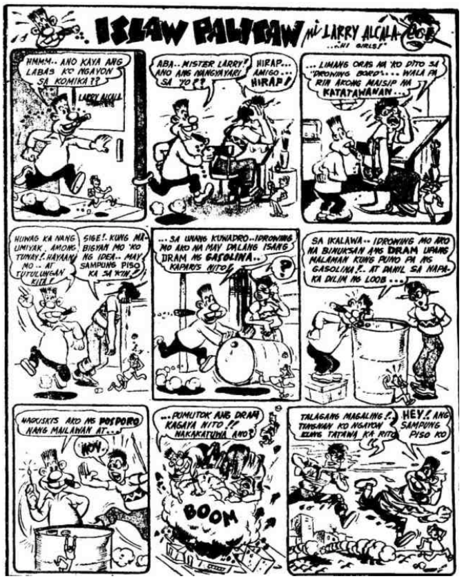 Content and form in a body of work give us an idea of its creator’s concerns. The work may be personal or clearly intended for a particular audience. It can also exhibit the author’s stand on relevant issues, presented with humor and wit. This is what makes National Artist Larry Alcala’s Slice of Life series and his other cartoon creations skillful, creative, interesting, and most of all, relevant to this day.